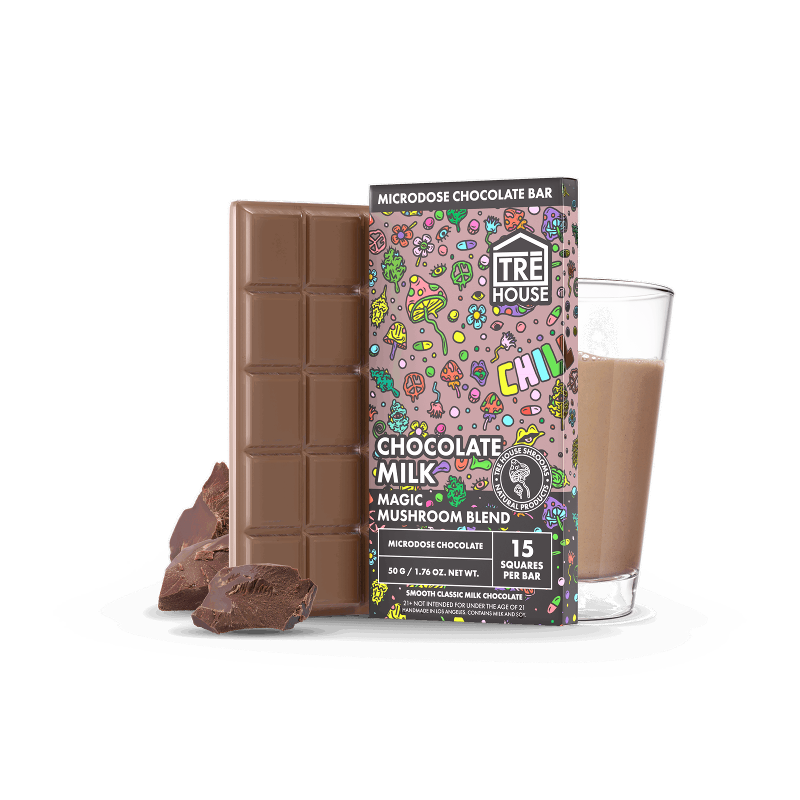 TREhouse Mushroom Chocolate Bar with a sleek, vibrant design.
